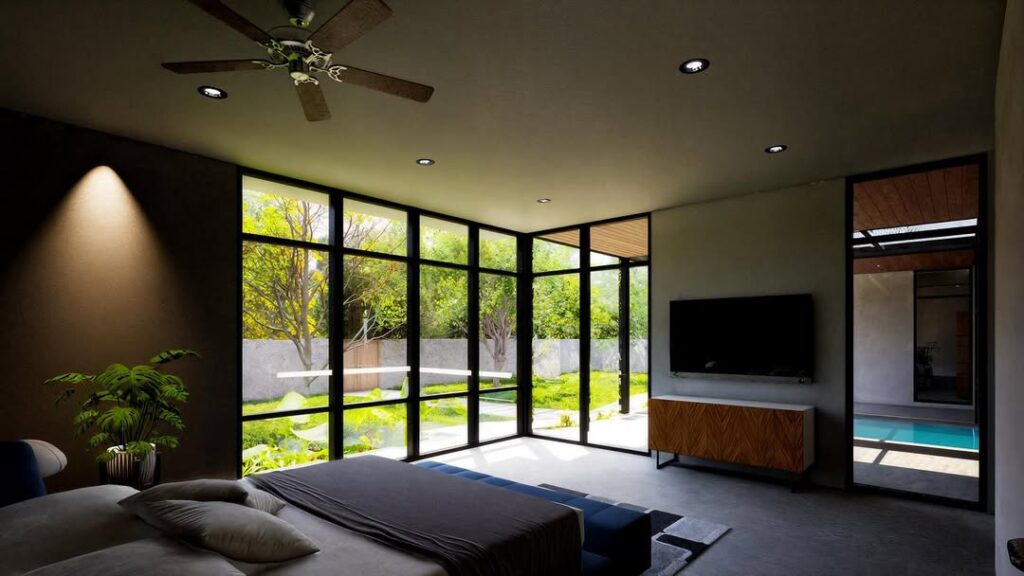 Se priorizó la accesibilidad para los adultos mayores a través de rampas y puertas anchas, así como las visuales a los árboles existentes de la selva desde la recámara principal y de visitas. El proyecto contempla una amplia zona para un caballo y su establo.