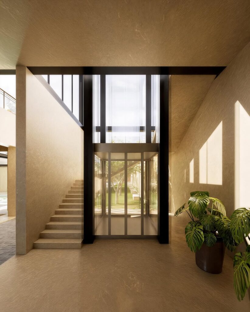 Al unir dos lotes con preexistencias se genera un esquema en L que permite conectar las Calles 60 y 47 a través del interior del proyecto, ubicado a contraesquina del Parque de Santa Ana.